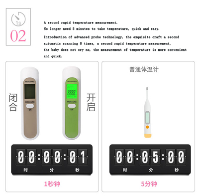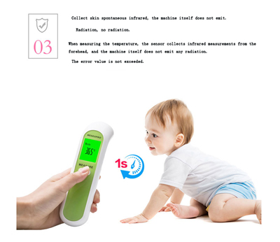 1. اضغط على مفتاح لبدء، عندما عرض "---"، انها مستعدة لقياس. عندما لد عرض "الجسم" يعني أنه يدخل الجبين قياس الوضع، قصيرة اضغط على مفتاح و يمكن قياس مباشرة، و عرض درجة الحرارة المستهدفة الحالية.
