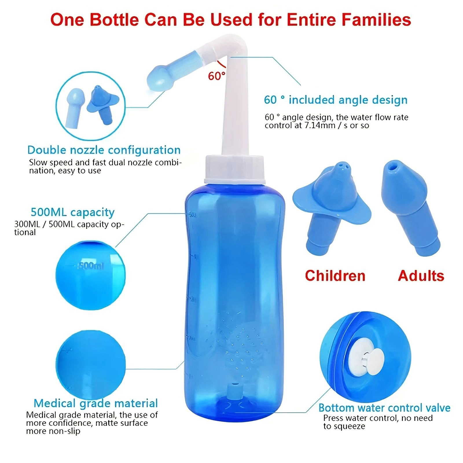 Neti Pot – bouteille de lavage Nasal, Irrigation des Sinus, irrigateur, nettoyant pour soulager la congestion nasale, la rhinite et les allergies